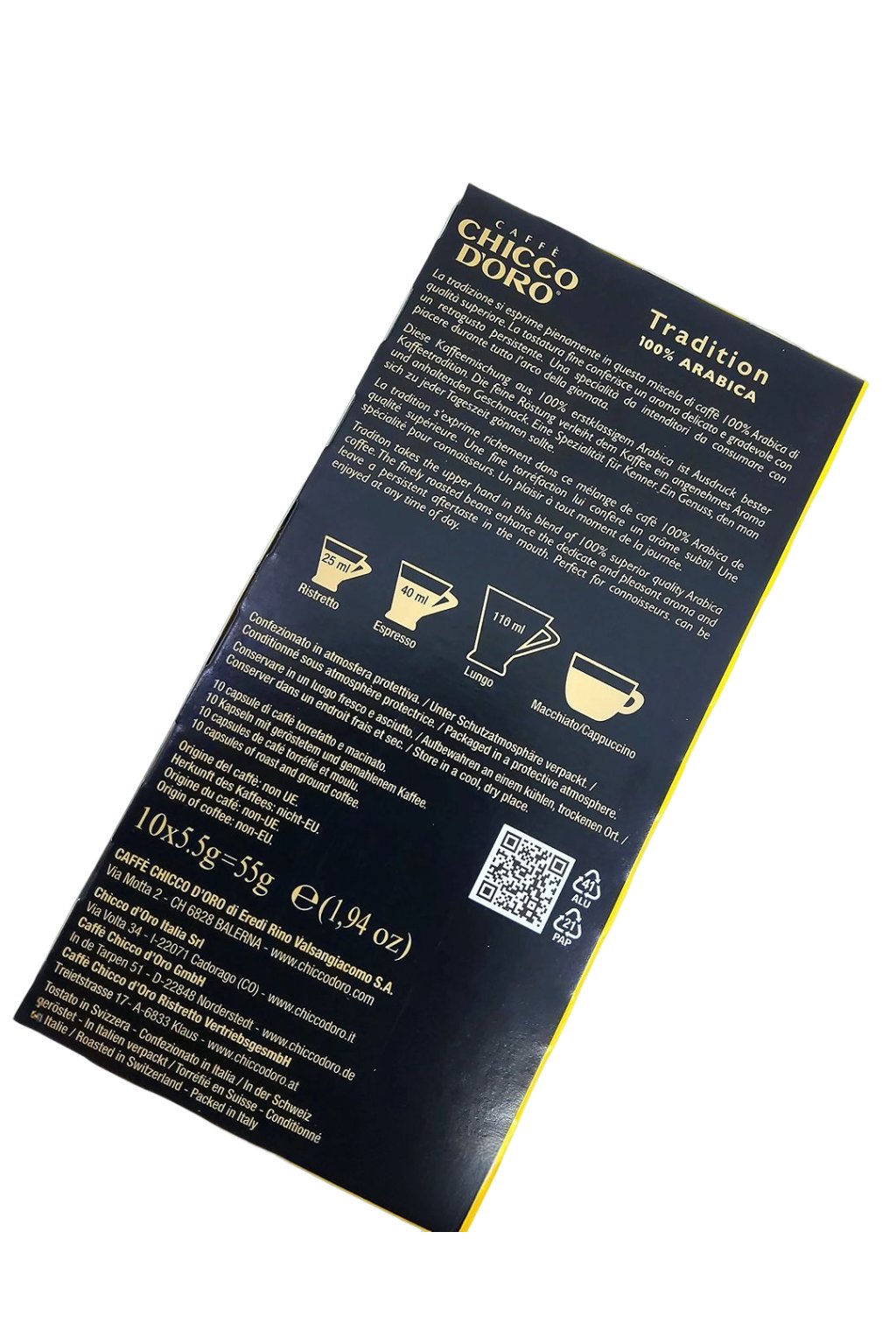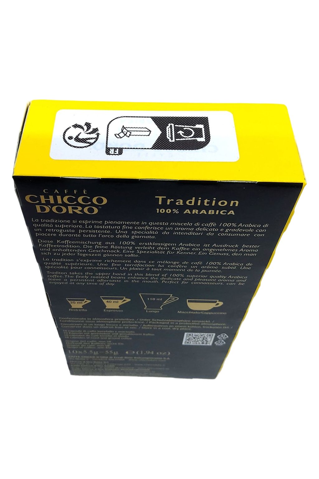 Každá kapsula je navrhnutá tak, aby zabezpečila optimálnu extrakciu a stabilnú kvalitu pri každej príprave. Sú plne kompatibilné so systémom Nespresso*, čo Vám umožní vychutnať si profesionálne pripravené espresso pohodlne doma alebo v kancelárii. Bohatá crema, plná chuť a podmanivá vôňa sa rozvinú už počas prípravy a naplnia priestor príjemnou atmosférou. Chicco d’Oro Tradition je ideálnou voľbou pre tých, ktorí obľubujú jemnejšie, no zároveň charakterovo výrazné espresso s harmonickým prejavom.