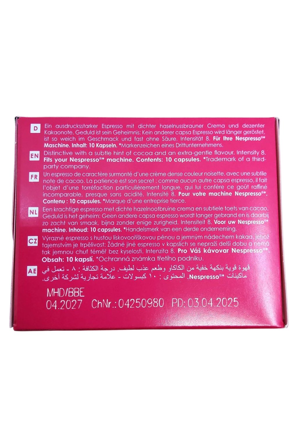 Stelesnenie poctivého baristického umenia ukrytého do malej kapsuly. Ide o espresso s výrazným charakterom, ktoré si Vás získa už pri prvom pohľade – hustá, zamatová crema v odtieni hnedých lieskových orieškov je dokonalou predzvesťou intenzívneho chuťového zážitku.